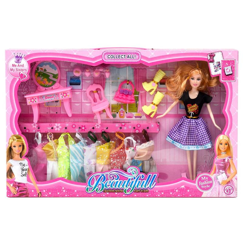 Іграшковий набір "Лялька". Комплектація - лялька, трюмо,набір одягу та взуття, аксесуари. Упаковка - коробка. Розмір - 62х7х33 см.