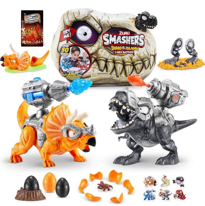 Готовы ли вы к доисторической битве? Пройдите через песок и слизь, чтобы найти части динозавров, прежде чем строить двух сражающихся динозавров. Защитите их оружие и доспехи для решающей сокрушительной битвы. Разбейте мини-яйца, чтобы обнаружить коллекционных персонажей, и поместите глазное яблоко в пасть динозавра, чтобы услышать ревущие огни и звуки! Вас ждет более 50 сюрпризов, которые можно разбить, построить и сразиться в Smashers Dino Island T-Rex Battles!
