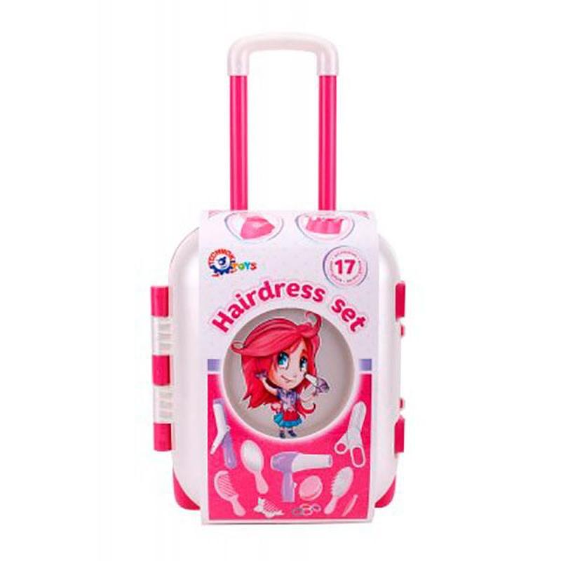 Мобильный профессиональный салон красоты – мечта, которую можно реализовать уже сегодня. Невероятный подарок для каждой принцессы - игрушечный "Набор парикмахера" в чемодане, выглядящий как настоящая жемчужина. Он непременно пригодится, когда нужно сделать прическу подружкам и мамочке, и просто припудрить носик. В наборе есть разные профессиональные инструменты на аксессуары. Для мастера-парикмахера – пояс с карманами, чтобы все инструменты были под рукой. Не испачкать одежду клиента поможет специальная накидка на защелке. В комплекте также есть расческа, щетка, плойка и заколки в форме бантика для модной вьющейся прически. Зеркальце с ручкой, пинцет и пудреница всегда будут под рукой для идеального макияжа. А чтобы хорошо "просушить" волосы и сделать легкую укладку, стоит использовать игрушечный фен (игрушка без электроники). Теперь у маленькой модницы все будет все как в настоящей парикмахерской. Для идеальной праздничной прически пригодятся 4 резинки для волос и схема заплетения модных косичек. Такой набор принесет море радости маленьким модницам и сделает игры очень реалистичными. Размеры игрушечных принадлежностей оптимально рассчитаны для девочек. Также их удобно взять с собой на прогулку или в детский сад. Хранить и переносить парикмахерские инструменты и аксессуары можно в маневровом чемодане с регулируемой ручкой. С набором парикмахера от ТехноК каждая девочка почувствует себя настоящей принцессой! Сюжетно-ролевые игры развивают детское воображение, фантазию, мышление и мелкую моторику. Знакомят детей с основами гигиены и ежедневного ухода. Такие игры улучшают коммуникативные и социальные навыки. Игрушка изготовлена из прочного качественного пластика, без запаха. Комплектация: чемодан, игрушечный фен и плойка без электроники, расческа, щетка, зеркальце, 2 заколки, пудреница, пинцет, ножницы, накидка, пояс, 4 резинки для волос, инструкция для заплетки. Для детей от 3 лет. Упаковка – яркий картонный пояс.