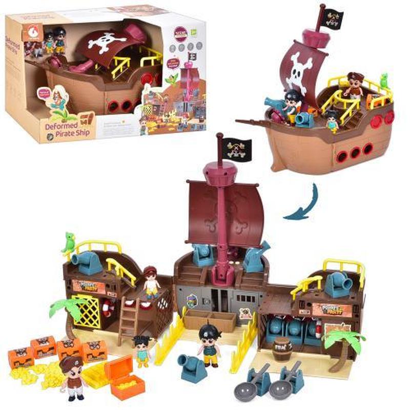 Ігровий набір "Пірати". Розкладний піратський корабель 37 см, фігурки 4 шт. Є звукові ефекти. Живлення - батарейки. Упаковка - коробка. Розмір - 47х21х28 см.