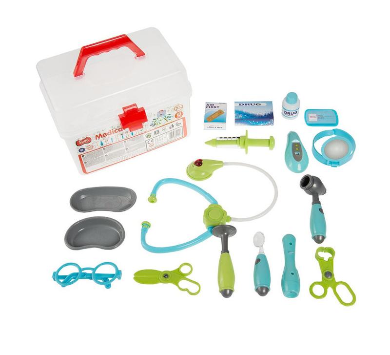 Дети любят наблюдать за окружающим миром, поэтому они часто играют в игры, имитирующие действия и поведение взрослых. Они играют разные роли и используют разные игрушки. Этот медицинский набор- прекрасное дополнение к такой игре. В наборе есть все необходимые элементы, чтобы ваш ребенок смог почувствовать себя настоящим врачом. В набор входит 18 элементов. Игрушка подходит для детей в возрасте от 3 лет и старше. Продукт соответствует требованиям безопасности - европейскому стандарту EN71.