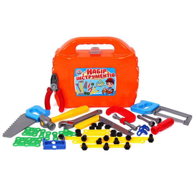 Іграшка "Набір Інструментів ТехноК", арт.4388 Іграшка доповнює «класичний» набір інструментів з набору арт. 4371 (молоток, пилочки, викрутки, плоскогубці та ін.) елементами конструктора, а саме: пластикові планки, кутники, пластини, болти та гайки. Це чудова нагода для малюка вивчити принципи роботи різьбових з’єднань, що безумовно стане в нагоді у «дорослому» житті. В комплекті: плоскогубці, кутник, молоток, пилка по металу, пилка по дереву, струбцина, розвідний ключ, викрутка з двома насадками, болти та гайки по 10 шт., планки - 10 шт., пластини - 2 шт., кутники - 2 шт. та 2-і скоби. Характеристики Вік дитини 3+ Розміри 27 х 22.5 х 8.5 см Вага 560 г Пакування Пластиковий кейс