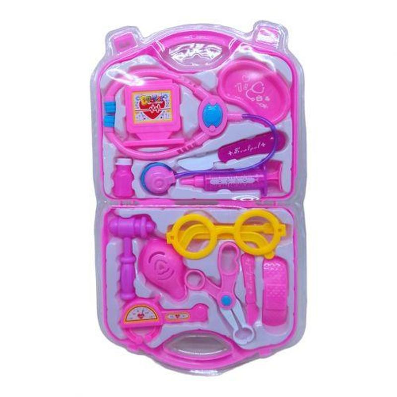 Яркий набор врача в чемоданчике, в который входят все необходимые для медицинской помощи предметы: стетоскоп, молоточек, шприц, ножницы, скальпель, аппарат для измерения давления, пластырь, лоток, баночка с лекарствами и очки врача. Все элементы набора выполнены из прочного и безопасного пластика. Для детей от 3-х лет.