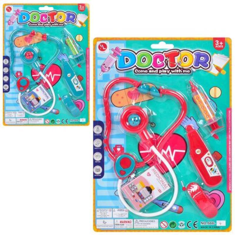 Іграшковий набір "Лікар", 2 види. 5 предметів в наборі. Матеріал - пластик. Упаковка - лист. Розмір - 24х4х33 см