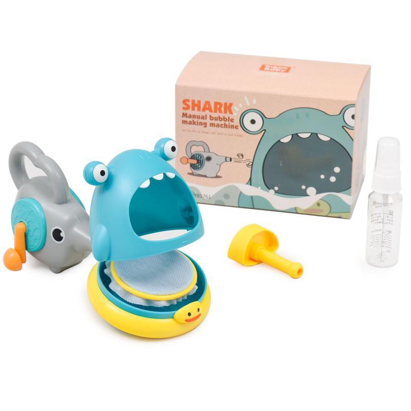 Іграшка "Акула", генератор піни для купання, 2 види. Комплектація - пляшечка з розбризкувачем мильного розчину, слоник для створення піни, мильна установка, трубка для надування піни. Мильний розчин не входить в набір. Матеріал - пластик. Упаковка - коробка. Розмір - 16х10х11 см.