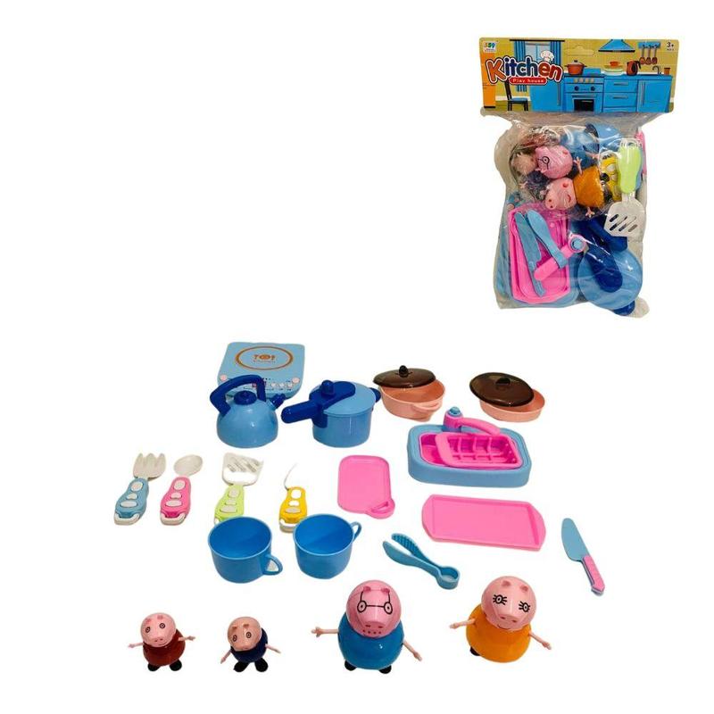 Набор посуды, сосотоящий из 20 элементов, включает в себя 4 героев мультсериала Свинка Пеппа, и 16 разнообразных предметов кухонной утвори.