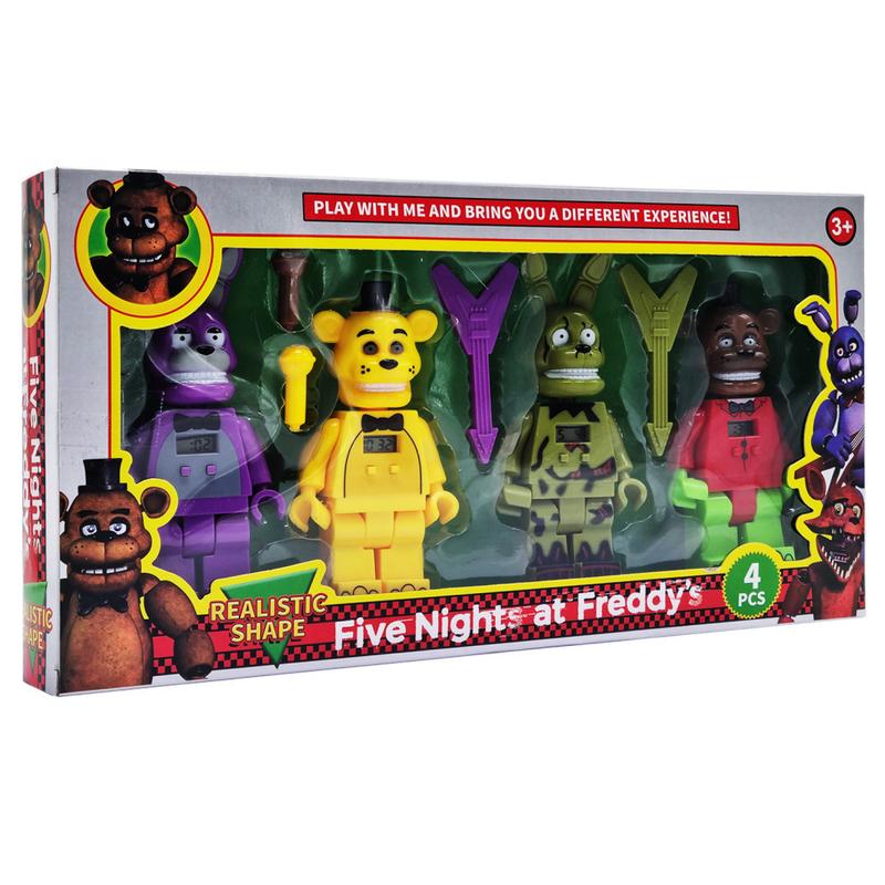 Этот набор представляет собой коллекцию из 4 фигурок, вдохновленных игрой Five Nights at Freddy's (FNAF). Каждая фигурка в этом наборе имеет проработанный дизайн и детали, передающие атмосферу ужаса и загадочности FNAF. Так же к каждому персонажу прилагается микрофон или гитара. Они являются прекрасным дополнением для фанатов игры и позволяют воспроизвести их любимые сцены и приключения.