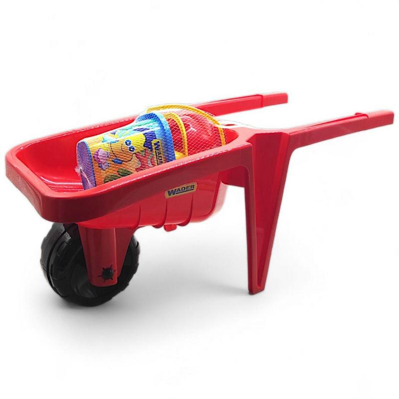 Детская садовая тачка с набором для игры в песочнице включает в себя всё необходимое для увлекательных игр на свежем воздухе. В комплект входят яркое ведро, удобная лопатка, грабли и формочка для песочных куличей. Тачка лёгкая и прочная, идеально подходит для маленьких строителей. Игровой набор способствует развитию координации, моторики и воображения ребёнка. Размер тачки - 75 х 31 х 34 см. Бренд: Wader Упаковка: Без упаковки Цвет: Красный Вес в упаковке: 1315 г Габариты в упаковке: 34 x 75 x 31 см Cтрана производитель: Польша Материал: Пластик Комплектация: Тачка, ведро, лопатка, грабли, пасочка