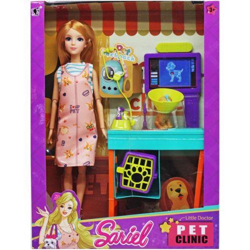 Большой кукольный набор с шарнирной куколкой-ветеринаром и песиком-пациентом. В комплекте есть стол для обследований с раковиной и рентгеном, переноска, мисочка с едой для щенка и стетоскоп. У куклы подвижные руки, ноги и голова, конечности сгибаются в суставах. Высота куклы - 29 см, высота собачки - 5 см. Бренд: MIC Упаковка: Коробка Цвет: Разноцвет Вес в упаковке: 430 г Габариты в упаковке: 7.5 x 25 x 33 см Габариты без упаковки: 6 x 29 x 4 см Cтрана производитель: Китай Материал: Комбинированный Комплектация: Кукла, песик, стол с раковиной, миска, переноска, стетоскоп