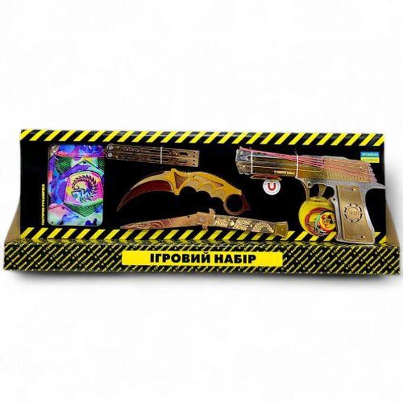 Игровой набор "big box gold 2", деревянный - резинкострел, ножи, перчатки, брелок