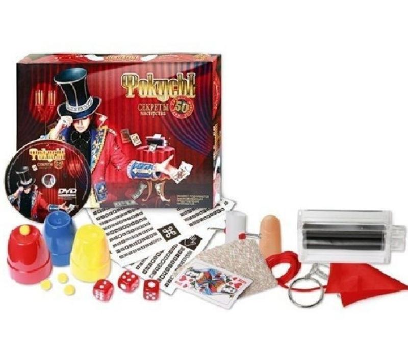 У наборі "Фокуси" 50 "2724 Ваша дитина знайде дивовижну колекцію з 50 найкращих спритних і магічних фокусів, які користуються неймовірною популярністю в усьому світі. З такою грою непосида навчиться перетворювати звичайні паперові листи в справжні гроші, проколювати палець без травм, виконувати фантастичні трюки з хусткою, гральними картами і багато іншого. Навчаючись фокусів і дивним ілюзіям, Ваш цікавий малюк зможе вразити батьків і друзів театральними виставами. Набір для фокусів творці доповнили набір диском з відео уроками. Демонстрація отриманих навичок не тільки допомагає дитині розвивати уважність і спритність, а й надає йому впевненості в собі, виховує почуття відповідальності і самостійності.