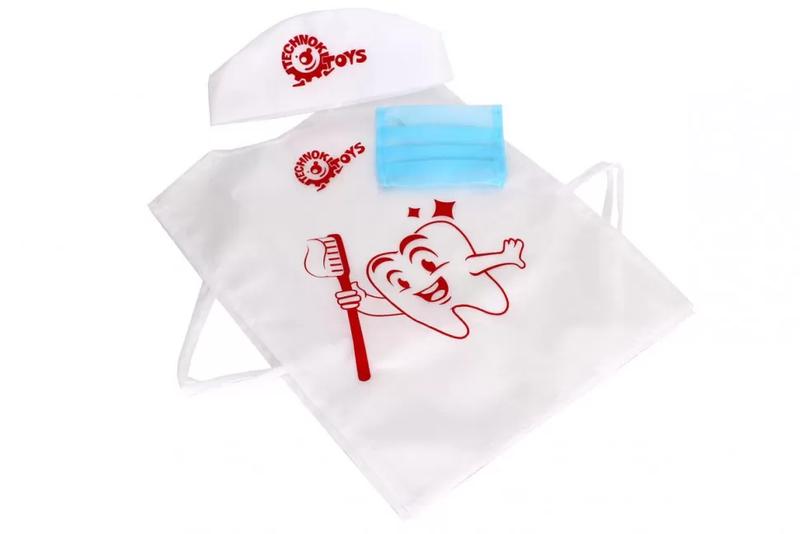 Ваш малыш мечтает стать врачом и помогать людям. Самое время познакомить его с новой профессией стоматолога. С игрушечным набором инструментов можно провести осмотр, и полечить зубки любимым игрушкам. А соблюдать все правила гигиены в стоматологическом кабинете поможет специальная накидка врача с интересным принтом, шапочка и, главное, защитная маска. Так малыш точно почувствует себя настоящим врачом. В наборе профессиональные стоматологические инструменты бурь, зеркало и зонд, а также шприц, очки, бейдж. И конечно, самое интересное — модель челюсти. Теперь все зубки можно тщательно осмотреть и хорошо полечить. Игрушка «Набор стоматолога» также поможет детям преодолеть страх перед посещением стоматологического кабинета. Мы рекомендуем поиграть этой игрушкой с малышом накануне визита к врачу и рассказать много интересного про его зубки. Или подарить игрушку после посещения врача за терпеливое поведение в кабинете. Игрушка изготовлена из прочного качественного пластика без запаха. Упаковка — пакет.