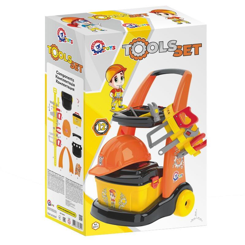 Игрушечный «Набор инструментов ТехноК» - настоящая находка для юного мастера. Теперь оборудование можно поднять на тележке и сразу приступать к работе. Все инструменты удобно разместить в поясе с кармашками. Плоскогубцы, пила по металлу и пила по дереву, уголок, молоток, разводной ключ, отвертка с двумя насадками - фигурной и плоской всегда будут под рукой. Для безопасности работы - яркая оранжевая каска. А после работы все инструменты нужно убрать и собрать в саквояж. Такие игры помогают развивать воображение, мышление и память, знакомят малышей с различными профессиями, учат аккуратности. Упаковка - яркая коробка 37.5х20х61,8 см.