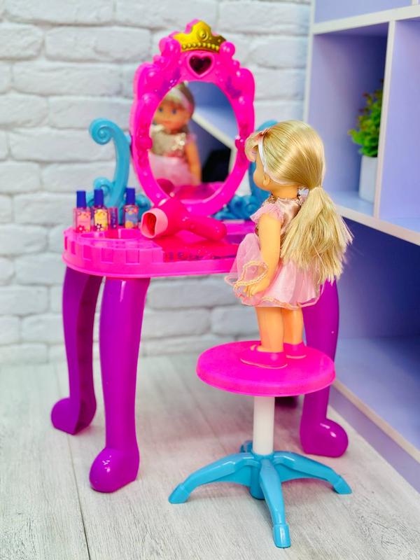 🪞ИСТИНЕННОЕ ТРЮМО СЕ СТОЛЬЧИКОМ🪑 🪞 Артикул: 2282 💸Цена: 1120 грн 💸 Захватывающий игровой набор с симпатичным косметическим столиком, круглым зеркалом🪞и стульчиком🪑 На зеркале расположена кнопка🔘активирующая подсветку 💡 и играют мелодии🎶 Зеркалом выполнено из безопасного материала👌 На столике находится шкатулка🗃️куда девочка сможет сложить свои аксессуары🪮 и косметику💅 Уложить свои волосы👱♀️ принцесса может с помощью фена, в котором встроен маленький вентилятор🌬️ Есть подсветка 🌈 и звуки🎼 В комплекте 13 аксессуаров 🎀 👄 🔋Работает от 3х батареек АА (не прилагаются) В фен требуется 1 батарейка 🔋 АА 📐Размер:44х25х75см Высота стульчика 22см При оформлении заказа через кнопку Купить полная оплата, обязательно уточняйте наличие Из-за диалога возможен наложенный по подписке 150 грн