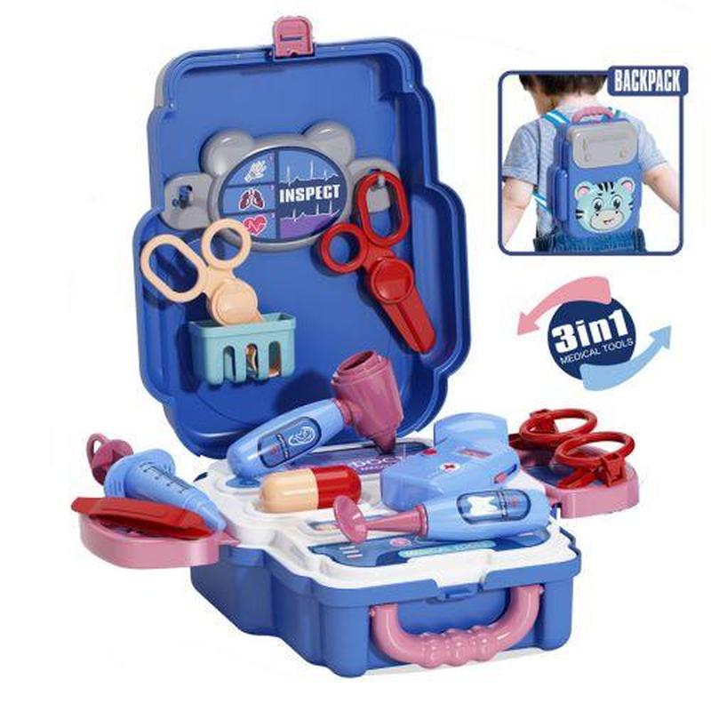 Ігровий набір, який обов'язково зацікавить маленького лікаря. У наборі є ігрове медичне приладдя (17 елементів), такі як: пінцет, ножиці, градусник, окуляри, таблетка, набір лора. За допомогою спеціальних елементів, які є у наборі, рюкзак можна перетворити на справжній медичний столик. У наборі є тканинні шлейки для рюкзака. Набір призначений для дітей віком від 3-х років. Вік: 3 роки Упаковка: Сумка Колір: Різнобарв'я Вага з упаковкою: 340 г Габарити в упаковці: 9 x 19.5 x 25 см Країна виробник: Китай Матеріал: Пластик Комплектація: Валіза, пінцет, ножиці, градусник, окуляри, таблетки, набір лора