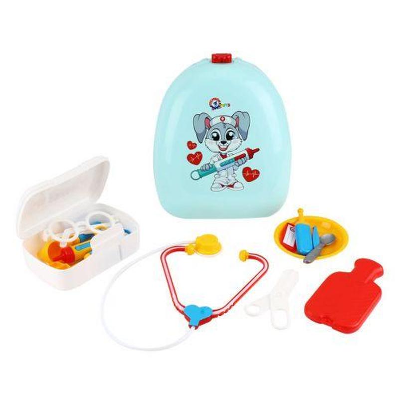 Дитячий лікарський набір, представлений у пластиковому рюкзаку з текстильними лямками. Усередині рюкзачка знаходиться безліч медичного приладдя: стетоскоп, градусник, шприц, щипці, грілка, ножиці, молоточок та інші інструменти та аксесуари. Усередині також є коробочка-аптечка, в яку можна скласти дрібне приладдя. Бренд: Технок Паковання: Без паковання Колір: Блакитний Вага з упаковкою: 530 г Габарити в упаковці: 11 x 26 x 21 см Габарити без упаковки: 11 x 26 x 21 см Країна виробник: Україна Матеріал: пластик Комплектація: Рюкзак, стетоскоп, градусник, шприц, щипці, грілка, ножиці, молоточок, бейджик, окуляри, тарілочка, ложка, аптечка.
