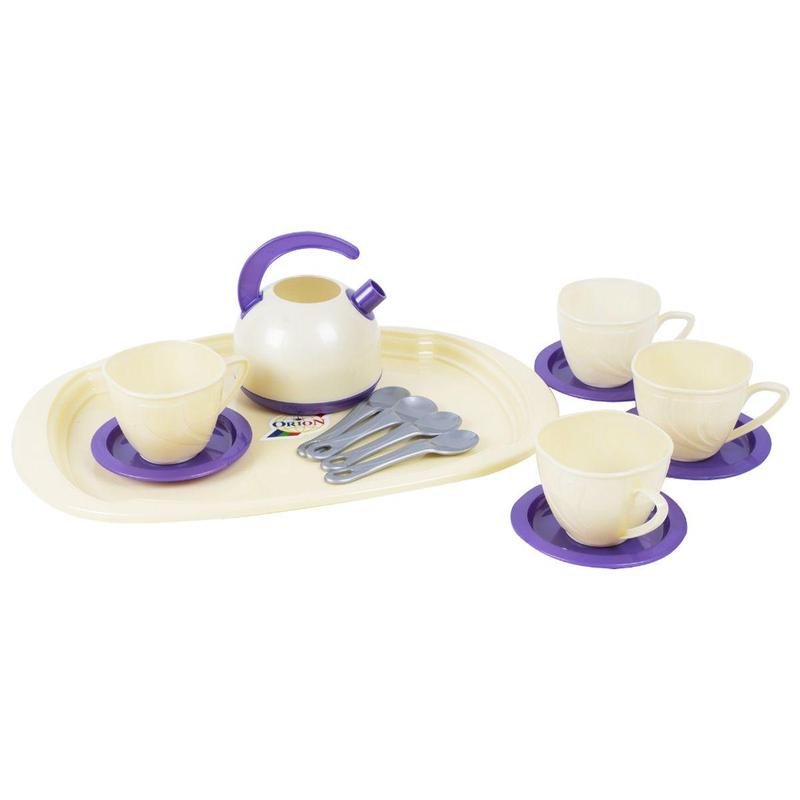 Пластиковый набор посуды, с которым ребенок сможет разыгрывать чаепития с друзьями или игрушками. В наборе есть поднос, чайник, 4 чашки, 4 тарелочки и 4 ложки. Размер подноса - 30х23 см. Набор выполнен из качественных и прочных материалов, обязательно порадует ребенка от 3-х лет. Бренд: Orion Упаковка: Пакет Цвет: Фиолетовый Вес в упаковке: 255 г Габариты в упаковке: 8 x 40 x 24 см Габариты без упаковки: 9 x 30 x 23 см Cтрана производитель: Украина Материал: Пластик Комплектация: Поднос, чайник, 4 чашки, 4 тарелочки и 4 ложки