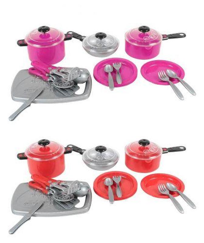 Набор посуды Iriska 3. В наборе: 4 тарелочки, 3 лопатки, ложечки и вилочки (по 4 штуки), половник, 2 кастрюли, поднос._