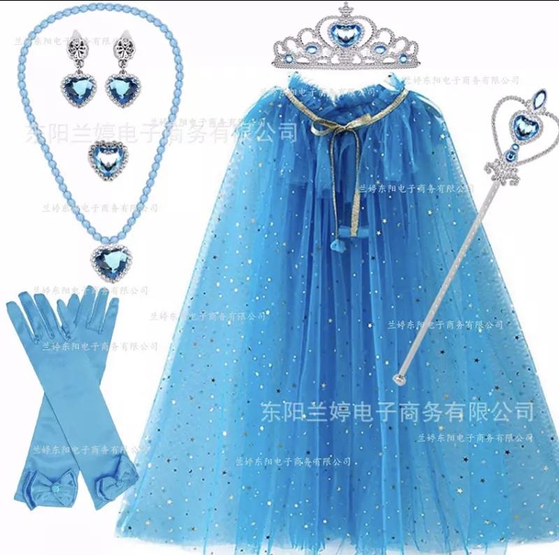 Набор аксессуаров для Эльзы, Золушки и других принцесс. В набор входит: накидка, корона, волшебная палочка, бижутерия и атласные перчатки. В наличии есть и другие цвета накидок, спрашивайте- все покажу.