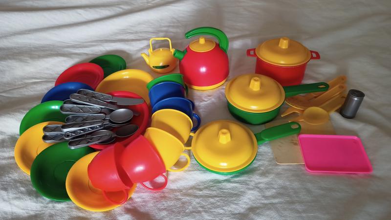 Продается набор кукольной посуды и пасочек. Много всякой всячины и для игры в доме и на улице в песочнице.