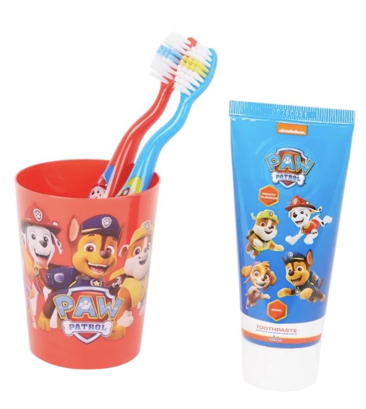 Дитячий набір для чищення зубів (Щенячий патруль) До набору входить: • 2 зубні щітки; • зубна паста; • стакан.