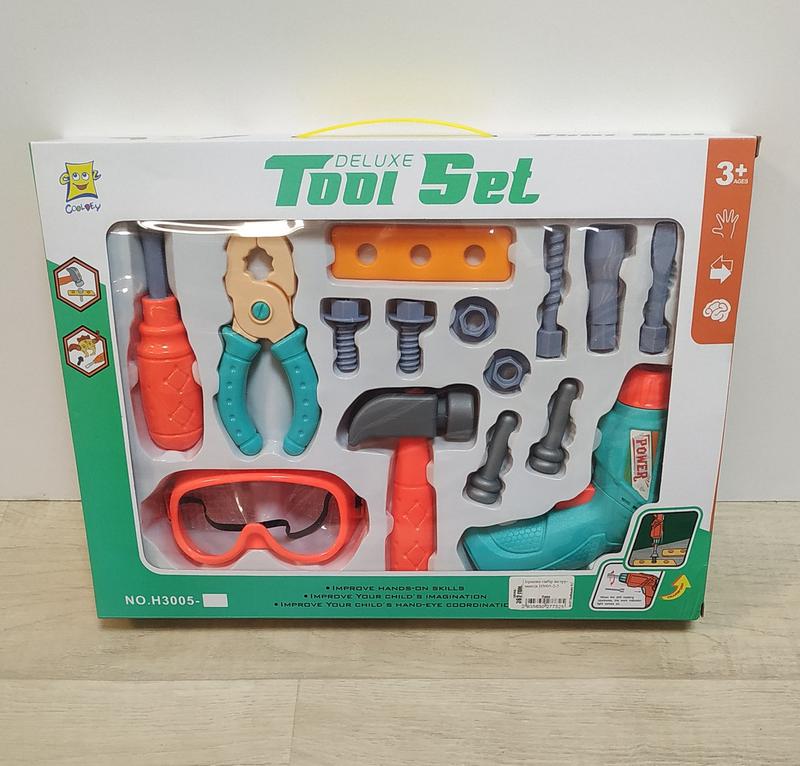 Іграшка Набір інструментів Н3005-2-3, 37,5*27,55см. В наборі 13 елементів, та захисні окуляри, та механічний шуропуверт.