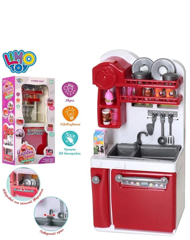 Кухня - это отличный игровой набор, предназначенный для юной хозяйки и ее куколок. О такой хорошей и просторной кухне мечтает каждая девочка старше трех лет. В игровом наборе есть все, что необходимо для сюжетной игры в кулинара. Кухня для кукол - комплект которого состоит из функциональной мойки, посудомоечной машинки, полочек, кухонных аксессуаров и игрушечных продуктов. Мини кухня-отменный повод, чтобы проводить время с друзьями или самостоятельно весело, развивая воображение и фантазию. Подобные игры прививают любовь к кулинарии юным леди, помогают тренировать мелкую моторику, координацию движений, эстетическое и цветовое восприятие. Детский набор идеально подойдет для сюжетно-ролевых игр с куклами высотой до 30 см. Используя в своих играх в дочери-матери интересные наборы, ребенок будет развивать фантазию, цветовое и эстетическое восприятие.