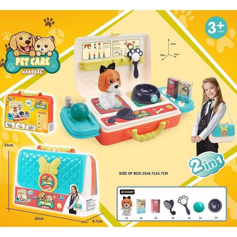 Игрушечный набор с маленьким питомцем, который нуждается в уходе. Выполнен в виде чемоданчика с раскладной конструкцией, которая превращается в личное пространство зверюшки. Внутри вы найдете дополнительные аксессуары, которые помогут поддерживать любимца в хорошем состоянии. Дополнительный текстильный ремешок позволит удобно переносить чемоданчик. Особенности: - игровой набор с щенком; - включает 7 игровых элементов; - чемоданчик с раскладной конструкцией; - присутствуют дополнительные аксессуары (миска, расческа, щетка, мяч, “Ежа”); - текстильный ремешок для удобного ношения чемоданчика; - размер чемоданчика у разложенном виде - 38х17х24 см; - игровой набор выполнен из прочного пластика. * Характеристики и комплектация товара могут меняться производителем без уведомления (16882)