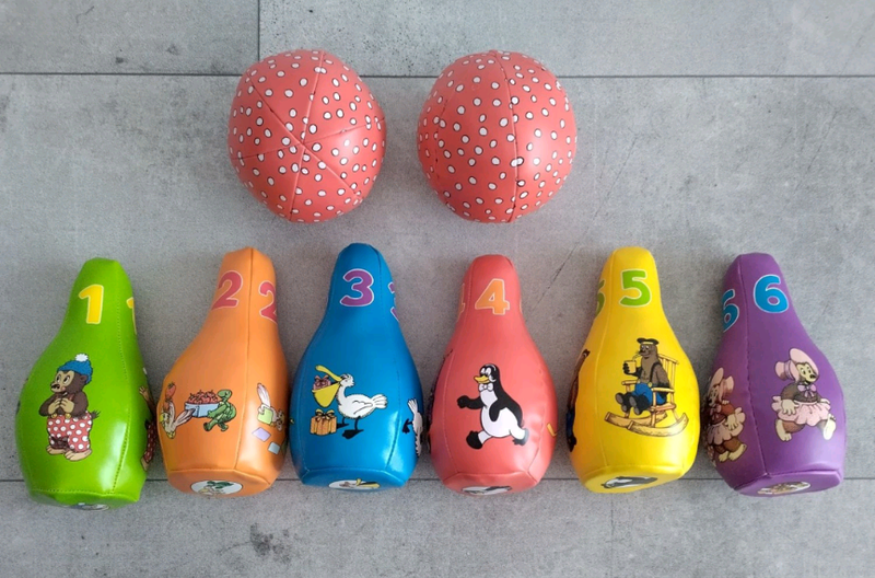 Набор для боулинга состоит из мягких шариков ( 2 шт.) и разноцветных кеглей (6 шт.), что делает его идеальной игрой в помещении. Набор поставляется в практичной сумке для хранения, поэтому его можно легко взять с собой в путешествие. Подходит для детей от 12 месяцев. Кроме интересной и веселой игры, малыш изучает цвета и счета от 1 до 6. Материал: эко кожа Размеры: В сумке 20*25*13 см, высота кегли 17 см, окружность пули 32 см Производство: Дания. Набор в хорошем состоянии, без дефектов. Есть другие игрушки. Смотрите мое объявления.