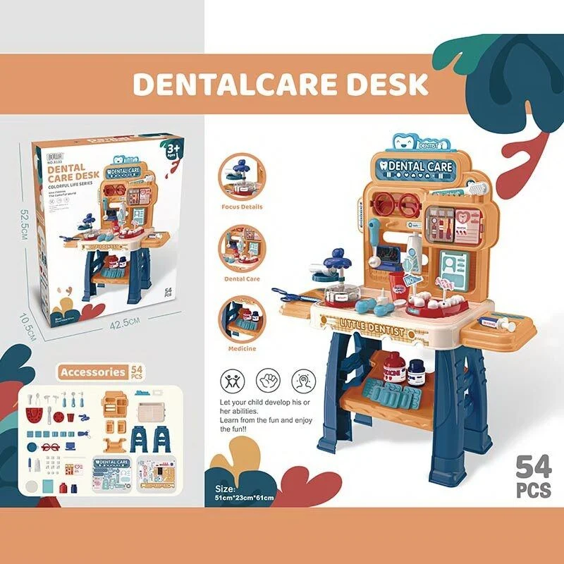 Интерактивный игровой набор позволяет малышам представить себя стоматологами. Игрушка состоит из 54 аксессуаров и большого игрового столика, который оснащен всеми необходимыми деталями для "лечения зубов". Комплект включает модель зубов, стоматологические инструменты, медицинские аксессуары, бутылочки и зубные гигиенические средства. Это не только веселая игра, но и полезное обучение правильному уходу за зубами и гигиене. Дети могут играть как самостоятельно, так и с друзьями, развивая мелкую моторику, логическое мышление и социальные навыки через сюжетно-ролевую игру. Особенности: - столик с полочками для удобного размещения аксессуаров; - 54 аксессуара в наборе; - подвижные детали; - муляжи зубов и челюстей; - инструменты стоматолога: зеркальце, щипцы, бормашина, шприц и т.д.; - тематические аксессуары; - в процессе игры ребенок будет учиться ухаживать за зубами и полостью рта; - эргономичный дизайн игрушки; - элементы набора изготовлены из пластика; - размер столика в собранном виде: 51х23х61 см.