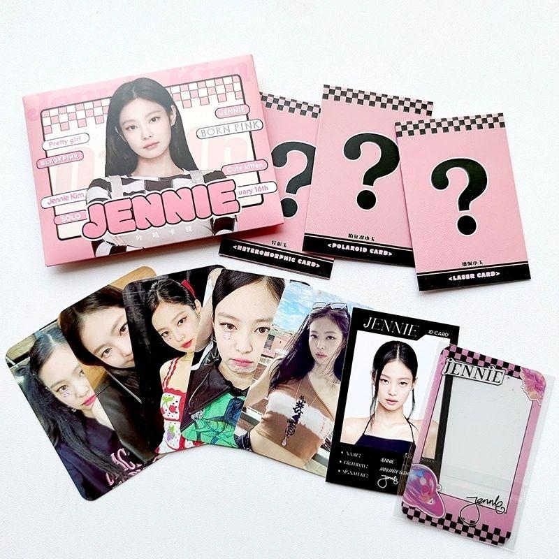Подарочный мини набор из Дженнифер Блэкпинк В наборе: картки 5 шт Id картка прозора пластикова картка рандомная голографическая карточка рандомный палароид рандомна картка стенд