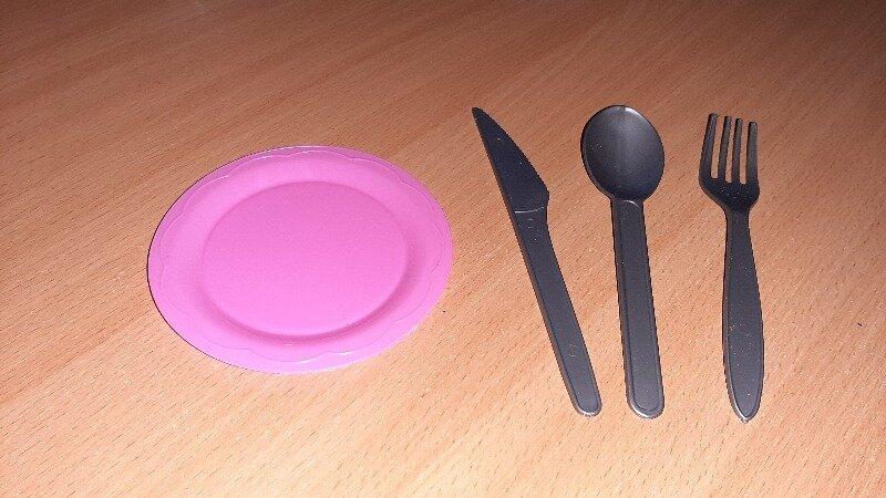 Набор Детской игрушечной посудки из 4 предметов - тарелочка, ложечка, вилочка, нож Материал пластик Тарелочка 10см, нож 14см, вилочка 13см, ложечка 13см. Новые. Цена указана за набор