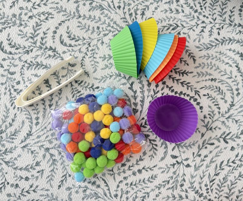 Набор для игры, силиконовые формы, пластиковый пинцет и разноцветные мягкие шарики, развивает внимание и концентрацию