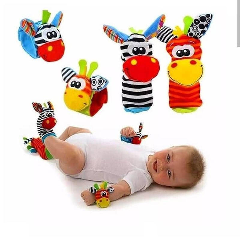 Интерактивный набор из 4 предметов: 2 браслета на 2 носочки с декором, шуршалками и погремушки. развивают мелкую моторику и внимание