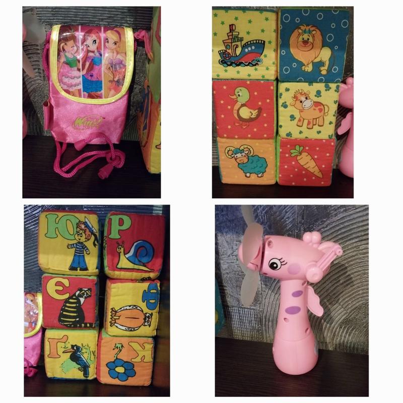 Детские различные игрушки 1. Сумка-кошелек Winx 2. Набор мягких кубиков 6шт. 3. Набор мягких кубиков 6шт. 4. Жирафик ветерок - пшикалка. Любая игрушка 70грн.