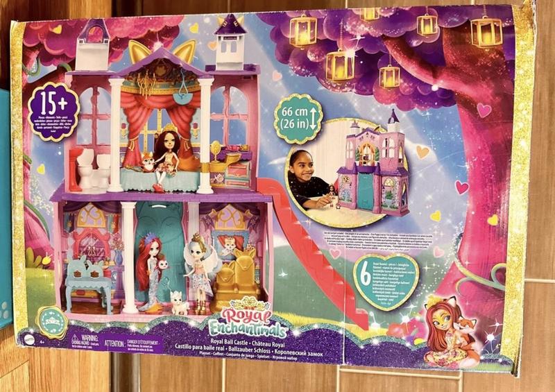 Если олх-доставка то плюс кампания!!! В пользовании не был, но когда подарили, то ради обходительности открыли и сложились, затем запаяли обратно, так как ребенку уже не по возрасту. Из нюансов: у куклы нет одного ушка лисички, не потеряется, а такое сразу было. Игровой набор "Палац для величественных баллов" Enchantimals. Игровой набор Королевичи Enchantimals Палац для величественных балов Royal Enchantimals Royal Ball Castle Playset with Fox Doll & Animal Figure, 19 Piece-Count & 5 Play Areas. Добро пожаловать во дворец для величественных баллов серии Королевичи Enchantimals. Этот дворец мечты, содержащий 6 игровых зон и достигающий 66 см в высоту, наполняется сказочным весельем. В набор входят кукла Лисичка Фелистити и ее подружка Флик в королевской одежде, а также мебель и аксессуары, с которыми можно разыгрывать самые разнообразные истории. Усидите на королевском троне (для двух героев), устройте пир в обеденный зал или поднимитесь по огромной лестнице в гой монархов с качелями для Флик и роскошным ложем для Лисички Фелисити. С королевским дворцом Enchantimals можно играть по-настоящему величественные сюжеты. Размеры упаковки - 56.2 х 38.2 х 13.7 см Комплектация: Палац Кукла Лисичка Мебель Аксесуари