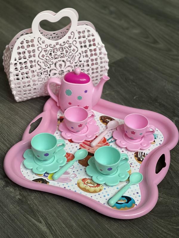 Чайний ігровий набір в корзині чашки блюдця таця чайник