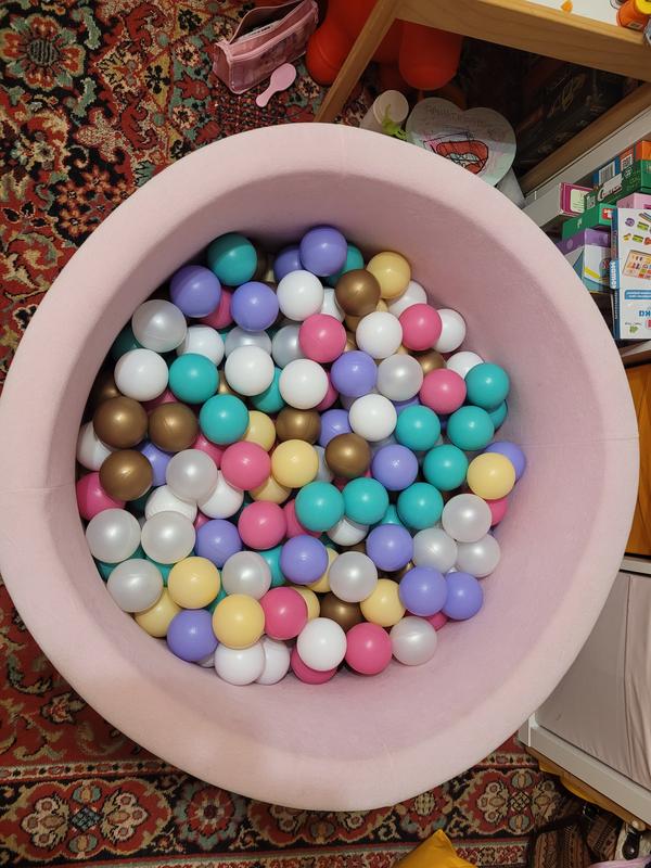 Сухий басейн рожевого кольору з кульками. Діаметр по зовнішньому краю - 90 см. Кульки - 195 шт.