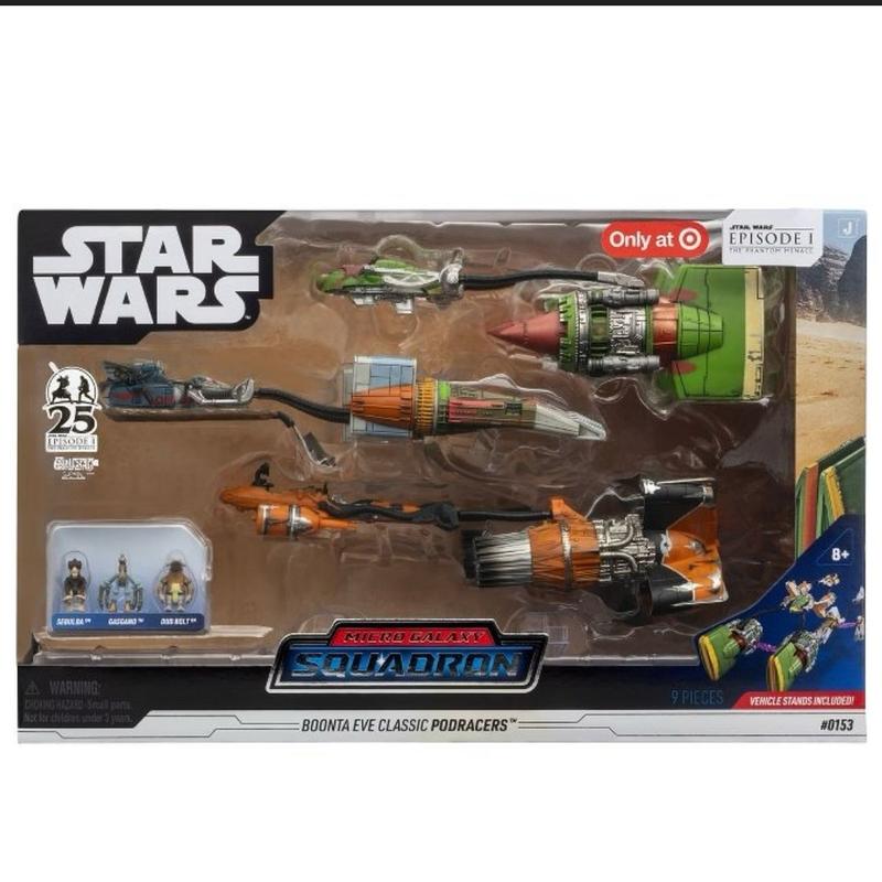 Эскадрилья Микрогалактики из «Звездных войн» продолжает удивлять нас все более необычными или малоиспользованными транспортными средствами из саги. Так же происходит и с новым набором транспортных средств, посвященным гонке Bounta Eve, в котором мы найдете трех гонщиков на подсчете и их пилота.