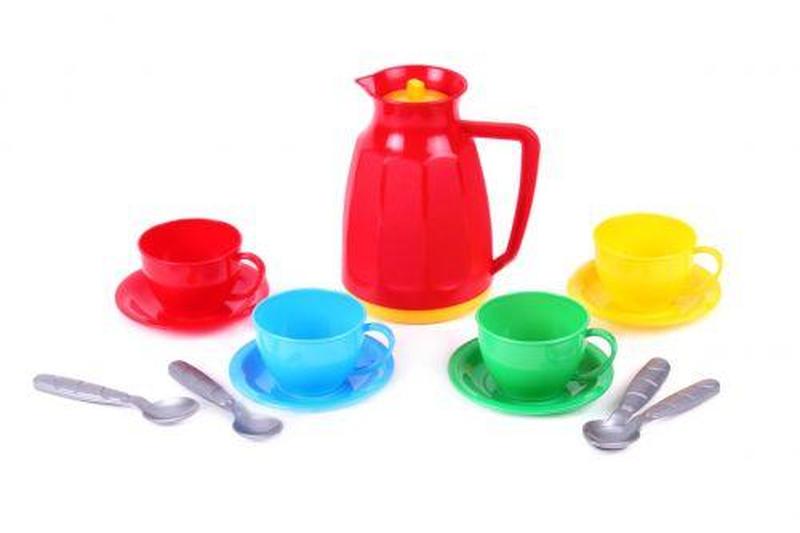 Набор яркой пластиковой посудки. В комплекте: 4 блюдца, 4 чашечки, 4 ложечки и графин с крышечкой._ Бренд: Технок Упаковка: Пакет Цвет: Разноцвет Вес в упаковке: 140 г Габариты в упаковке: 22.5 x 9 x 9 см Габариты без упаковки: 23 x 9 x 9 см Cтрана производитель: Украина Материал: Пластик Комплектация: 4 блюдца, 4 чашечки, 4 ложечки, графин с крышечкой