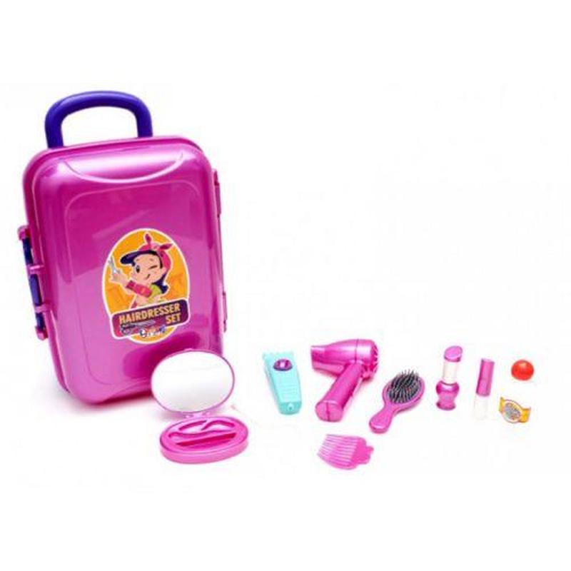 Набор пластиковых парикмахерских принадлежностей в удобном чемоданчике с колесиками и выдвижной ручкой. В наборе есть фен, помада, машинка для стрижки, гребешок, лак для ногтей, бутылочка для крема для рук, расческа, зеркальце, ножницы. Набор выполнен из прочных и безопасных материалов, для детей от 3-х лет. _ Бренд: Orion Упаковка: Чемодан Цвет: Разноцвет Вес в упаковке: 765 г Габариты в упаковке: 37 x 15 x 24 см Габариты без упаковки: 24 x 15 x 37 см Cтрана производитель: Украина Материал: Пластик Комплектация: Чемодан, фен, помада, машинка для стрижки, гребешок, лак для ногтей, бутылочка для крема для рук, расческа, зеркальце, ножницы