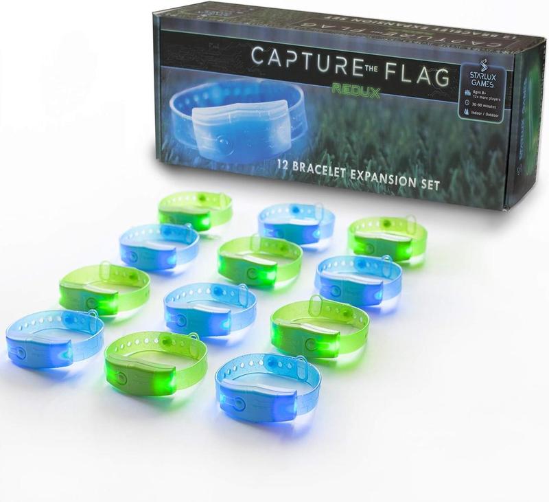 Описание - ДЛЯ БОЛЬШИХ ГРУПП: используйте для игры в Capture the Flag REDUX с 20 полностью освещенными игроками; идеально подходит для игр с соседями, семьями, детьми и внуками. - В КОМПЛЕКТ ВХОДЯТ 12 СВЕТОДИОДНЫХ БРАСЛЕТОВ: с яркими огнями, регулируемыми ремешками в стиле часов и всеми необходимыми батарейками (для более чем 12 часов игры, тип батарейки CR1220) - БОЛЬШЕ ИГР: Создавайте свои собственные игры на свежем воздухе для кемпинга, прятки или другие светящиеся в темноте игры на свежем воздухе, или добавляйте светящиеся спортивные игры (например, светящийся в темноте баскетбол) - НЕ является отдельной версией Capture the Flag REDUX (требуется набор для захвата флага, светящийся в темноте) - От STARLUX GAMES: От создателей Cosmic Kick the Can, Dive Diamonds, Word Treasures и других -- мы гордимся тем, что предоставляем активные, инновационные игры для сегодняшнего поколения!