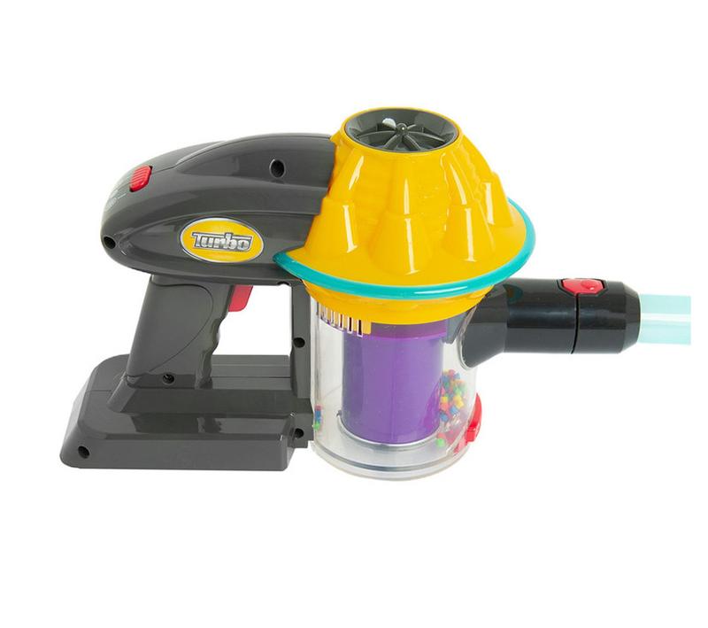 Игрушечный вертикальный пылесос . Благодаря своим функциям он позволяет проводить детальные ролевые игры. Она состоит из нескольких деталей: ручки с контейнером, стержня ручки и двух насадок. Пылесос издает звуки и имеет светящиеся элементы. Это идеальная игрушка для развития вашего ребенка и обучения основным домашним делам. Размеры упаковки: 45 x 14 x 18 см. Необходимые батарейки: 4 x AA. Возраст: 2+