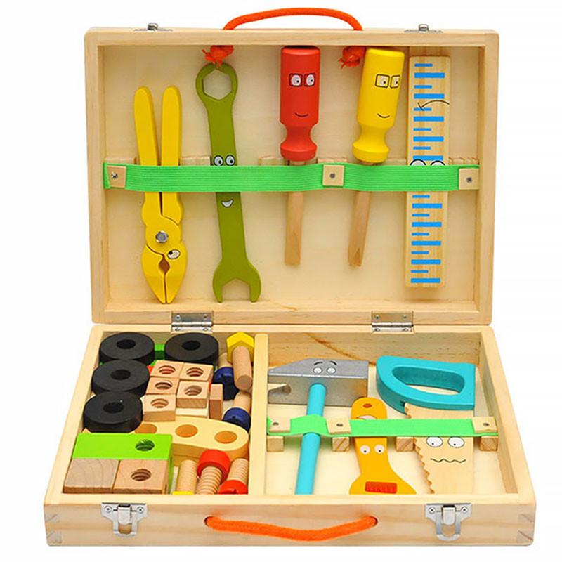 Игровой набор инструментов для мальчиков Lesko "Toolbox" Большинство мальчишек мечтают о таком наборе инструментов, как у папы или деда. Чтобы там были все необходимые составляющие, собранные в одном месте и удобны в переноске. Дети через имитацию деятельности взрослых обучаются важным навыкам, приобретают полезные знания об окружающем мире. Это очень здорово происходит в сюжетно-ролевых играх, для которых нужны предметы, очень похожие на настоящие. А для родителей важным моментом является безопасность игрушки и ее нетоксичность. Чудо-подарок приготовила компания Lesko непоседам, которые всегда хотят что- либо крутить, вертеть, создавать и разбирать. Прекрасный набор инструментов, больше похожий на переносную мастерскую, состоит из множества нужных и полезных вещей. В нем есть ручная пила, линейка-уровень, разводной и гаечный ключ, плоскогубцы, две отвертки и молоток, а также множество деталей, из которых можно смастерить разные предметы: машинку, самолетик, тачку и прочие конструкторские изделия. Чем же хорош такой набор в качестве подарка мальчику старше трех лет? Тем, что именно в этом возрасте ребята уже способны играть самостоятельно или в небольших группах по 2-4 человека. Именно такой набор подойдет для сюжетной игры в мастерскую или конструкторское бюро, потому что он легко развивает сложные психические процессы: мышление, логику, внимание, память, пространственное восприятие и воображение. А кроме этого - мелкая моторика, сенсорное восприятие и координация движений также прогрессируют в данной деятельности. Благодаря набору инструментов Lesko DL-0241 "Toolbox" у маленького помощника под рукой есть все, что может понадобиться в игре, а деревянный кейс имеет металлические замки и ручку для переноски.