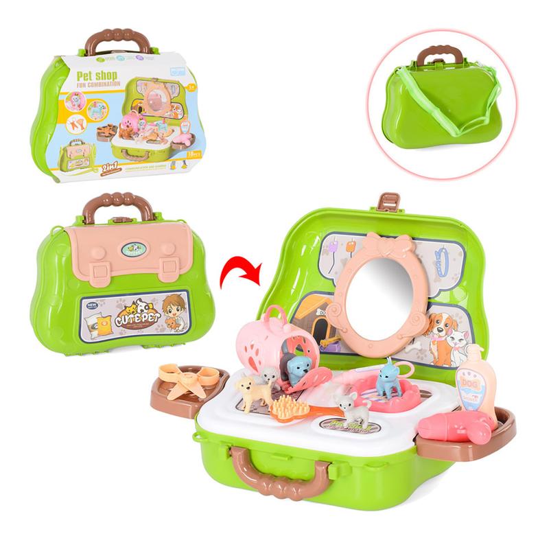 Игровой набор включает в себя предметы салона красоты для животных. С его помощью девочка сможет позаботиться о красоте своих питомцев. Все предметы расположены в удобном чемоданчике с ручкой и ремешком, что позволит брать набор с собой на прогулку или в гости. Набор аксессуаров будет отличным подарком маленькой моднице. Размер упаковки: 25х17х9см. Комплектация: фен, расческа, имитация косметики, фигурки животных.