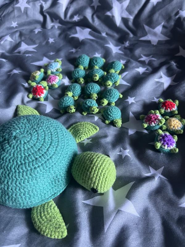 Є багато наборів та іграшок, переходьте у наш профіль🤍 Звʼязаний з любовʼю💛 ✔️В наявності 📏Висота 20+- велика і 20 маленьких черепашок 🧸Мʼякенькі на дотик 🧶Виготовлені з найкращої пряжі 👀Безпечне кріплення деталей