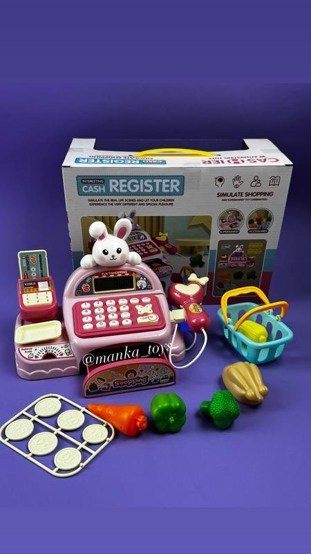 Відчуй себе справжнім касиром або покупцем, навчися рахувати гроші, сканувати товари та оплачувати покупки. Завдяки реалістичному дизайну та інтерактивним елементам касового апарату, гра стає ще кориснішою та захопливішою! Касовий апарат має зручну панель із кнопками, висувний ящик для монет, сканер, що імітує справжній звук, а також іграшкову платіжний термінал для розрахування картою. До набору також доданий кошик з продуктами, які можна купувати та продавати в ігровій формі. Особливості: - іграшка виготовлена у вигляді касового апарату; - касовий апарат, кошик, муляжі харчових продуктів, монет, кредитної картки в наборі; - функціональний калькулятор; - підсвічування сканера; - звукові ефекти; - мініваги; - іграшка працює від 3 батарейок типу АА (не додаються); - висувна шухляда для монет; - симуляція використання кредитної картки; - м’які силіконові кнопки на панелі касового апарата; - яскравий дизайн іграшки.