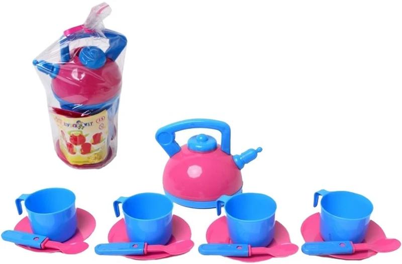 Набор для чаепития. В набор входят 13 предметов: 4 ложки, 4 чашки, 4 тарелки, низкий чайник. Цвета в ассортименте. Материал: пластиковый. Для детей старше 3-х лет.