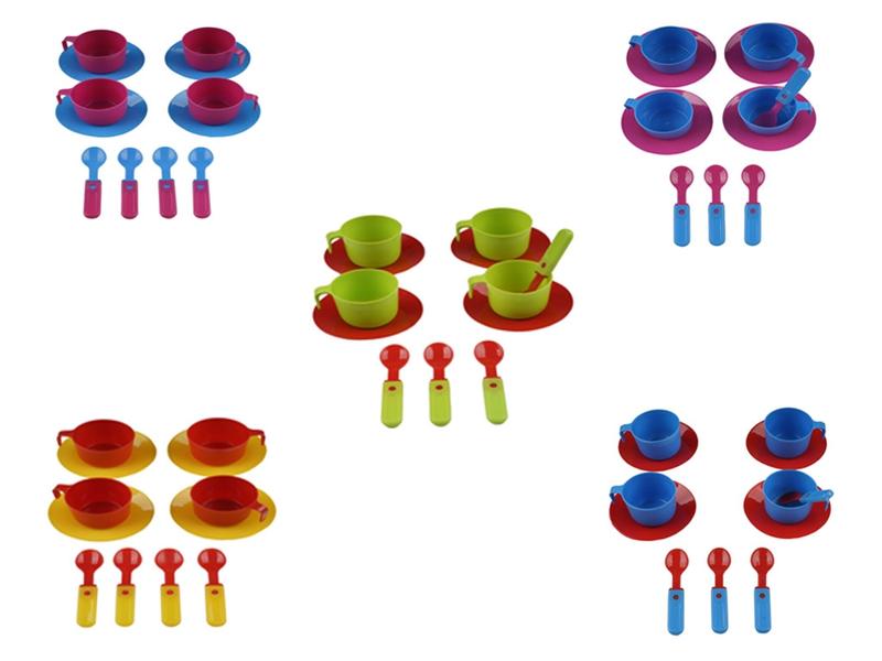 Набор для чаепития. В набор входят 12 предметов: 4 ложки, 4 чашки, 4 тарелки. 5 видов. Материал: пластиковый. Для детей старше 3-х лет.