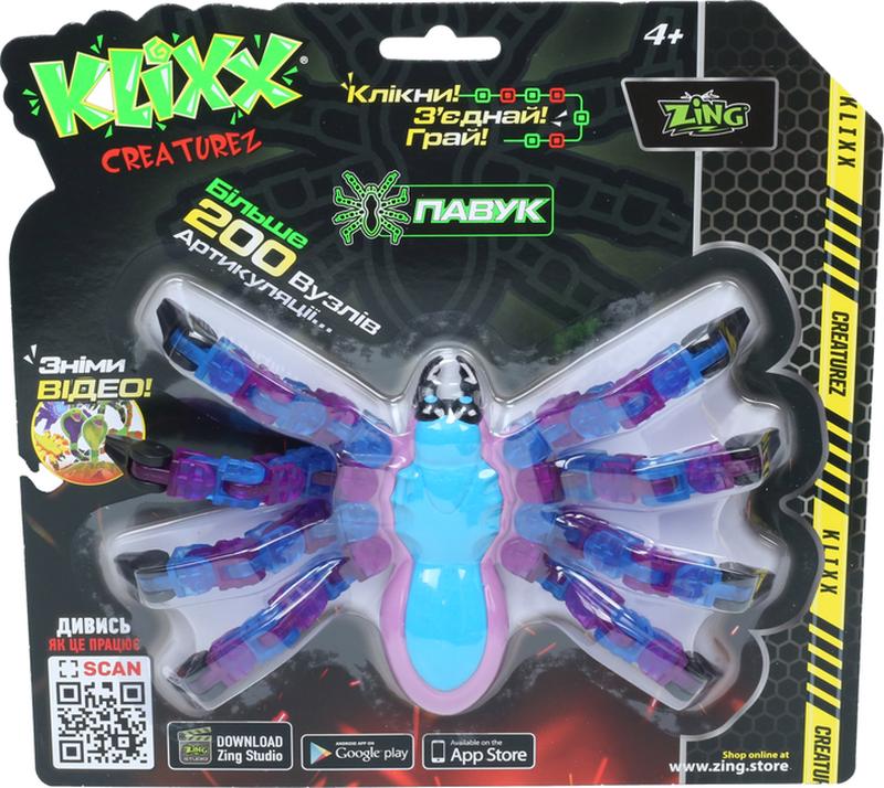 Кликс Кричерз - это опасные существа из мира дикой природы, которые не только не навредят, а наоборот, развлекут тебя! Они имеют более 200 узлов артикуляции. Это позволит тебе уменьшать или увеличивать их. Ты даже можешь придумать и сделать собственное существо. Может Паукобра или Скорпомураха?! Что нужно сделать? Кликни! Соедини! Играй! Узнай об интересных и познавательных фактах из мира дикой природы. Создавай собственную покадровую анимацию с помощью приложения. Игрушка Klixx Creaturez - Fidget Паук голубовато-синий